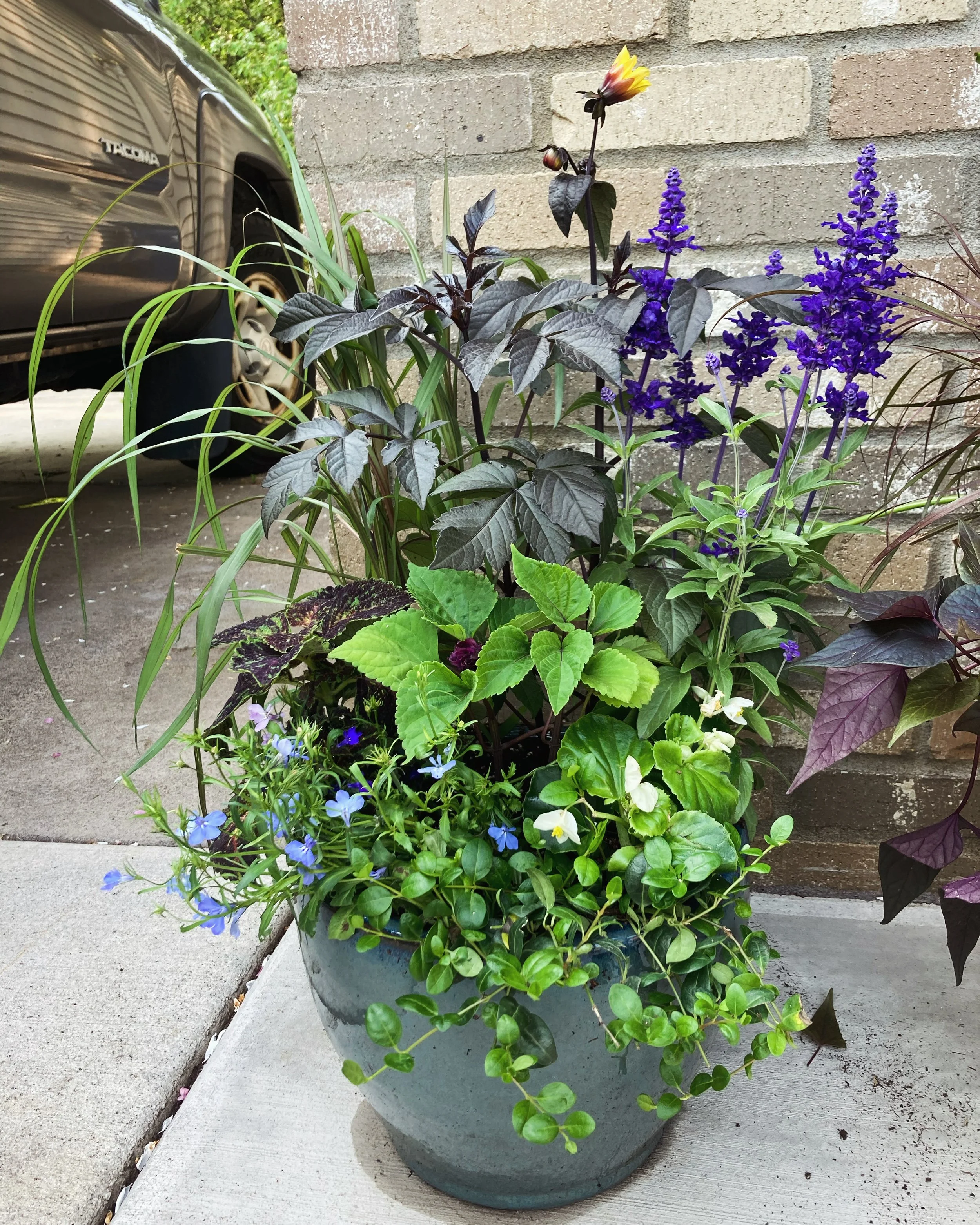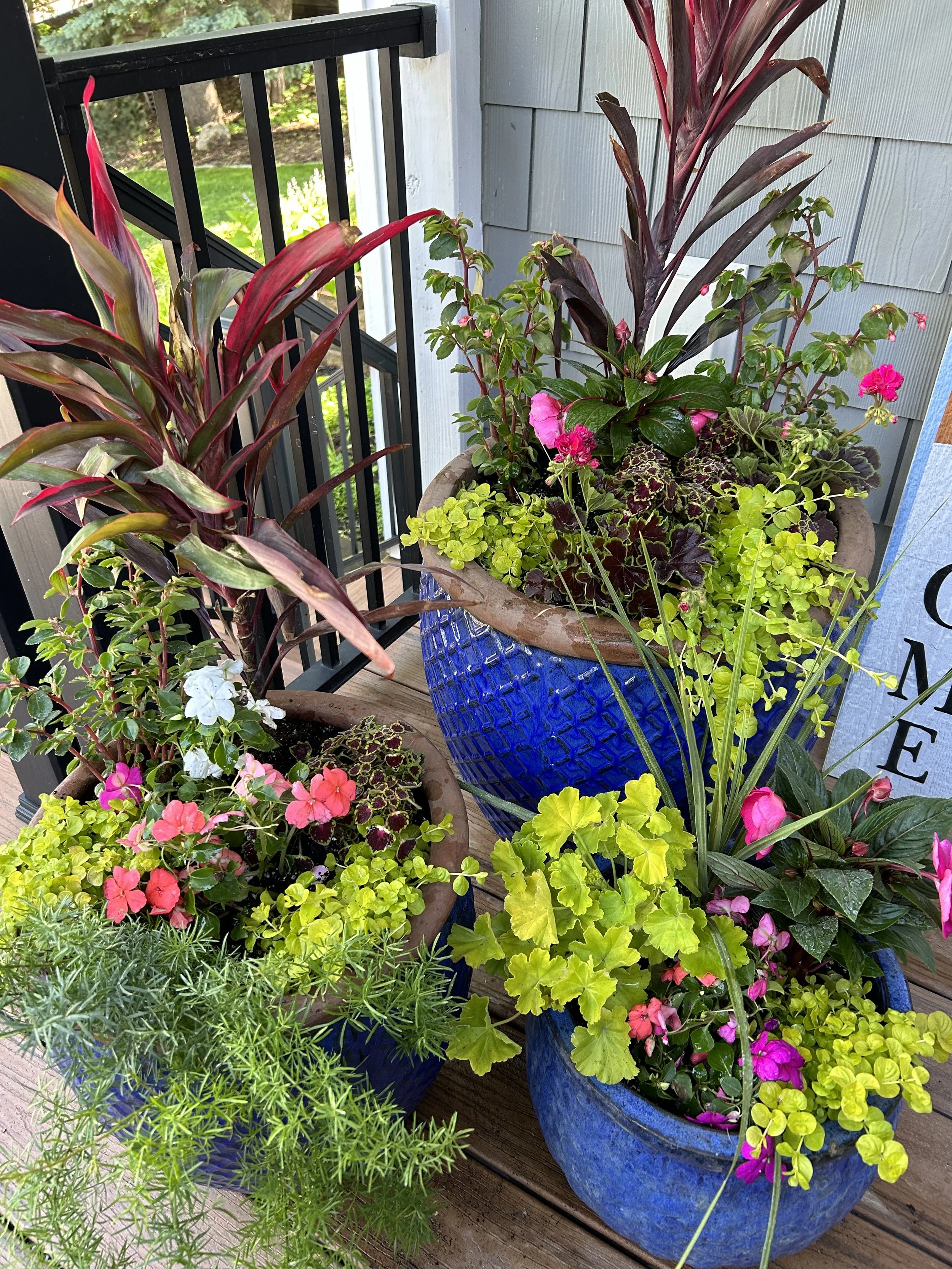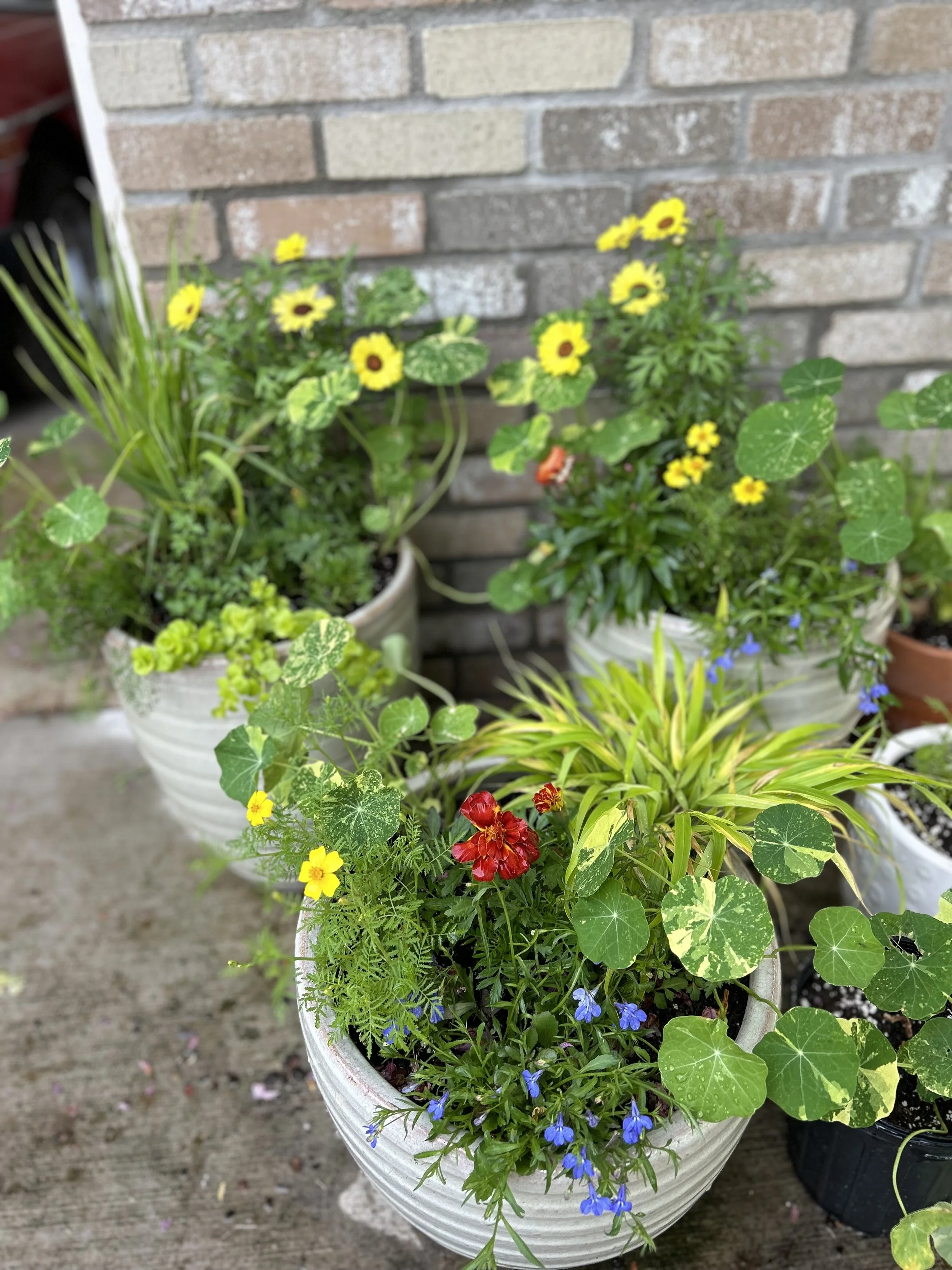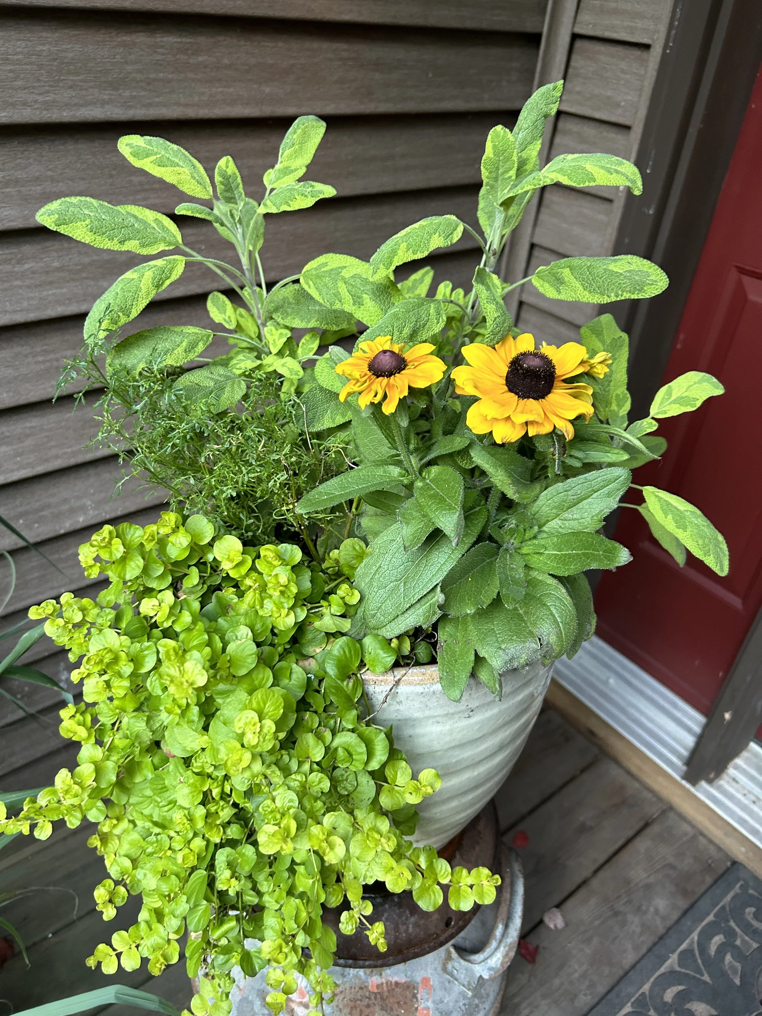 Front door pots in the heart of summer, are a true treasure. Blooms, spilling foliage, a convenient place to plant herbs! We specialize in growing and sourcing ornamental edibles that are hard to find and rarely seen.